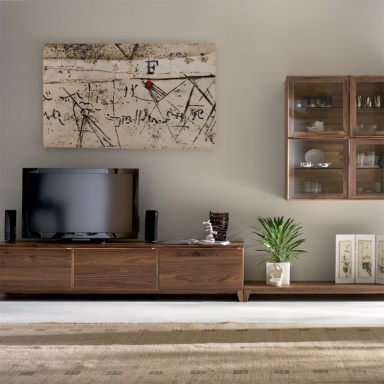 The rack is from the Italian manufacturer Arte Brotto. Model with space for TV, with drawers and shelves of various sizes. In the basis of the framework solid wood. The style is classic.