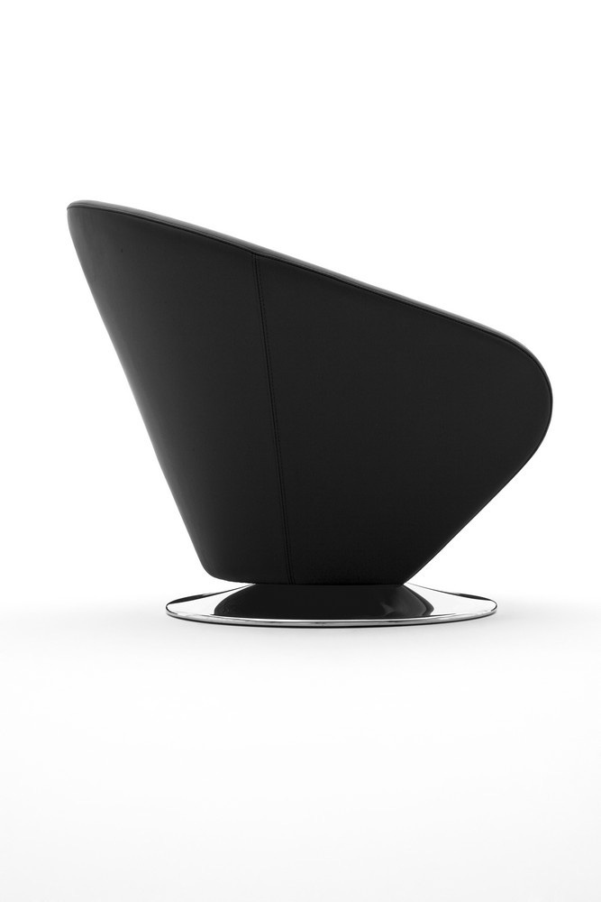 The Kiss chair from the Italian manufacturer Alberta Salotti. Upholstered in leather from the company portfolio. Rotating base made of chromed metal. Colours in stock. The perfect choice for a living room in modern style.