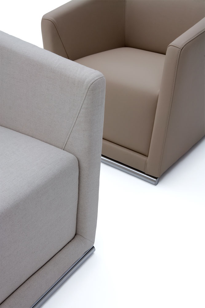 The Perseus arm chair from the Italian manufacturer Alberta Salotti. Upholstery - leather or textiles from a range of companies. Base in chromed metal. Colours in stock. The perfect choice for a living room in modern style.