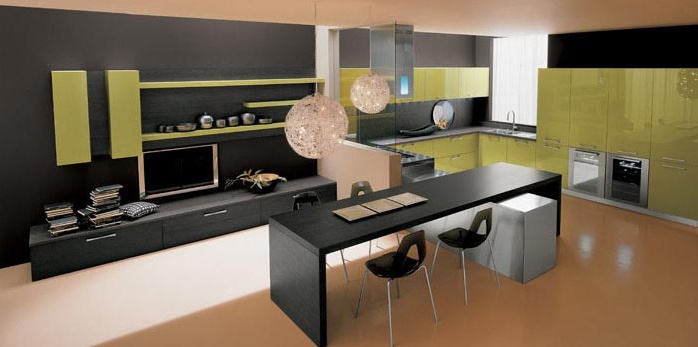 Kitchen Dinamica london green from the Italian manufacturer Arrital Cucine. Doors made of PVC and BA. The colour of this model is green.