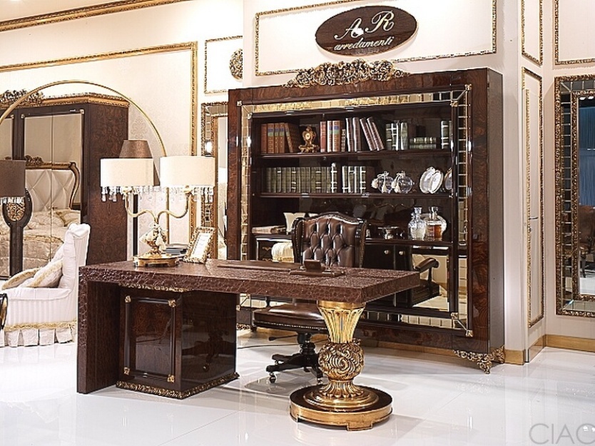 Headsets for the office from the Italian manufacturer AR Arredamenti. Set includes a Desk, chair and wardrobe. The furniture is made of solid wood. Upholstery - leather. Legs - carved. Carving handmade. Colours in stock.