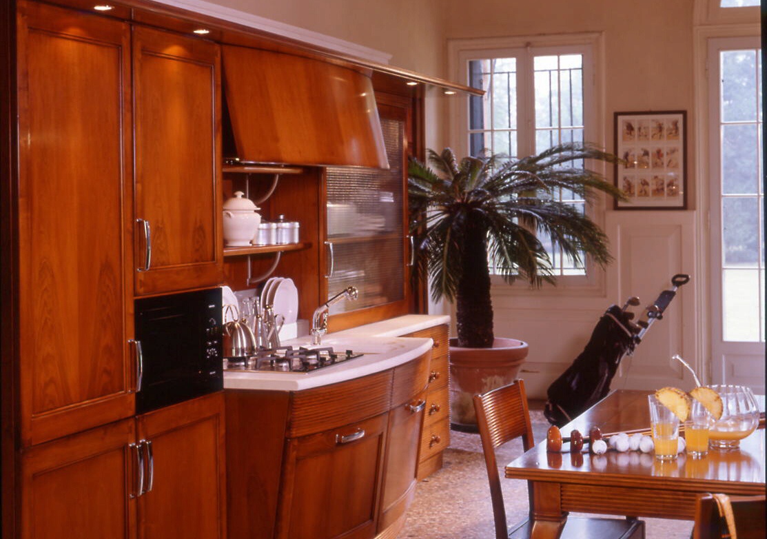 Set for the kitchen from Italian manufacturer Arca. Set is made in a classic style. For furniture used walnut wood and other softer woods. Facade finishing is made with beeswax. Headset color - natural wood.