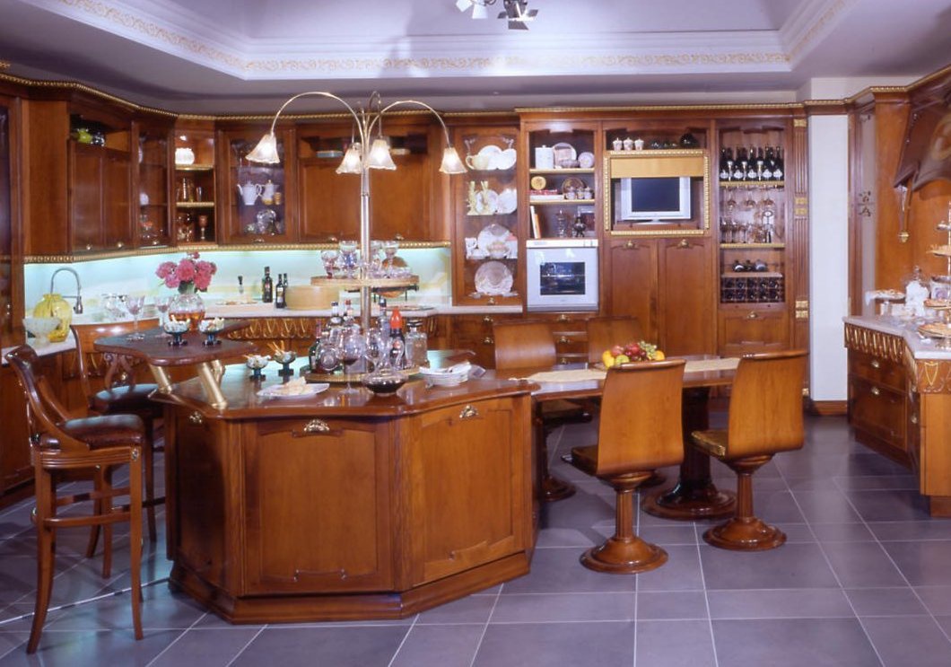 Set for the kitchen from Italian manufacturer Arca. Set is made in a classic style with a hint of art Nouveau. For furniture used walnut. Top marble. The color of natural wood products.