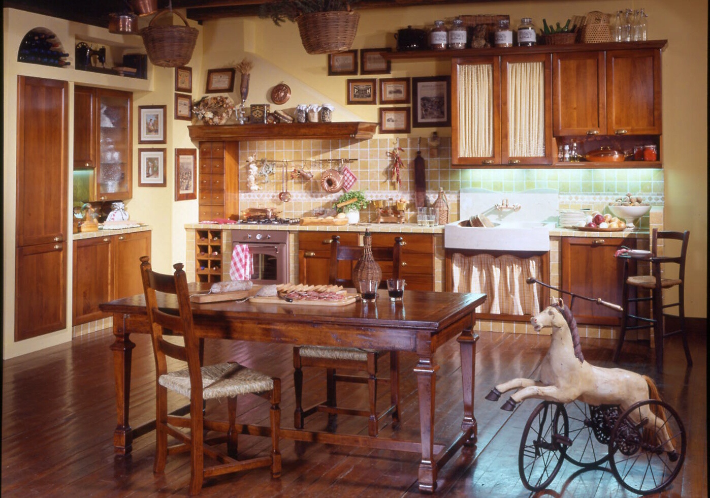 Set for the kitchen from Italian manufacturer Arca. Set is made in a classic style. For furniture used walnut. Variants of furnish of a facade: beeswax, natural materials. Working area - natural stone. The color of natural wood products.