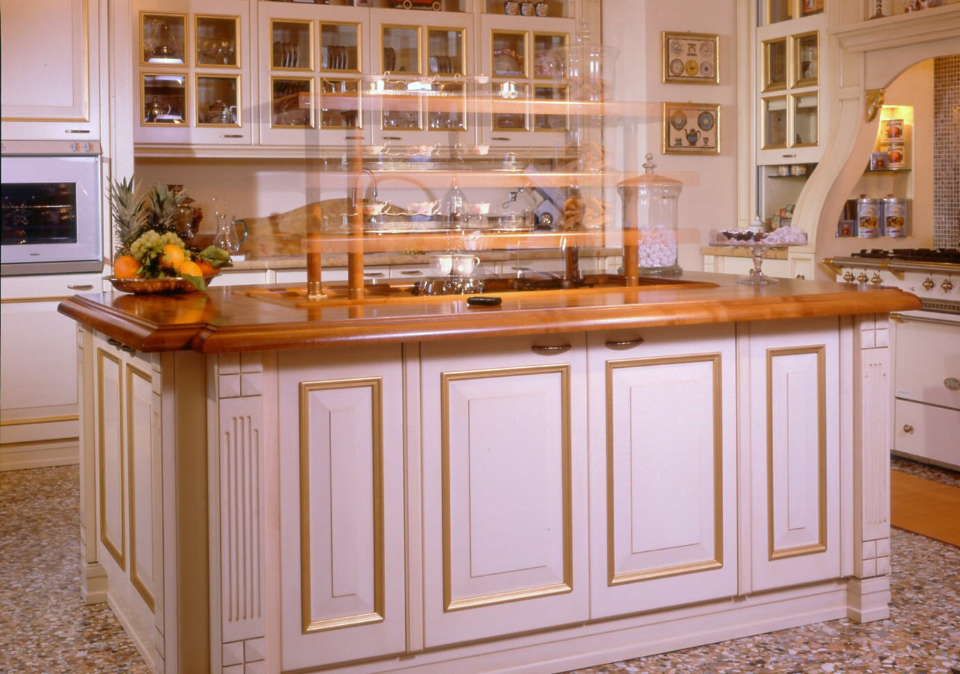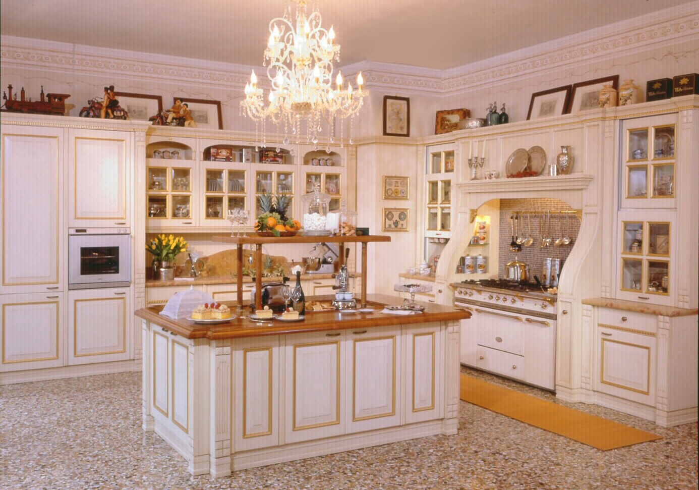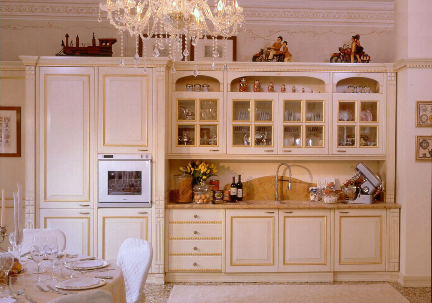 Set for the kitchen from Italian manufacturer Arca. Set is made in a classic style. For furniture used walnut. Characterized by the revival of ancient forms, combined with rich carving, ornament, and decoration in gold. Colours in stock.