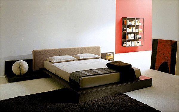 Headsets for bedrooms from Italian manufacturer EmmeBi. Set consists of a double bed and bedside floor shelves. Frames made from solid wood and lacquered in the color of the wood. Finish headboard fabric beige. The model is made in a modern style.