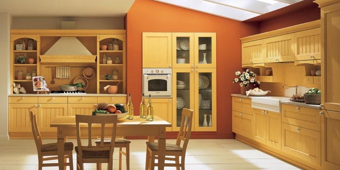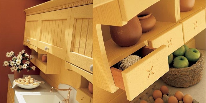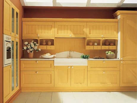Village YELLOW kitchen by Italian manufacturer Arrital Cucine. Doors of this model are made of wood. Kitchen color yellow.