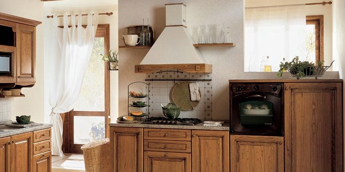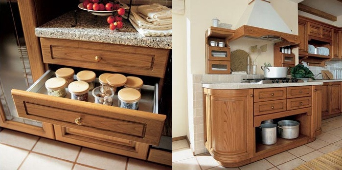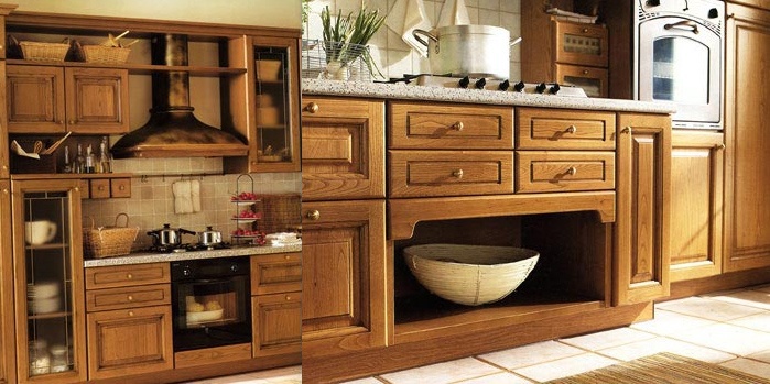 The kitchen is Selva from the Italian manufacturer Arrital Cucine. The kitchen is made of chestnut. The colour of this model - the natural color of wood.
