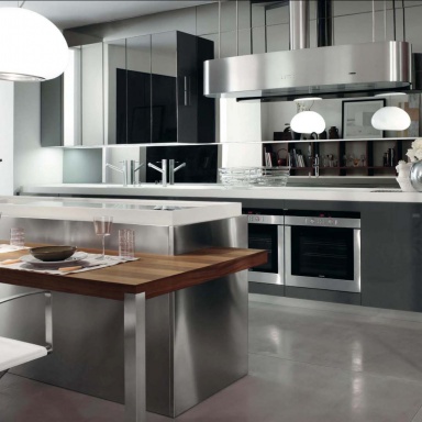 Kitchen Longline from Salvarani Italian manufacturer. The frame presents the headset is made of MDF, fa?ade spanam and stainless steel. Countertop made of artificial stone. The furniture is made in modern style.