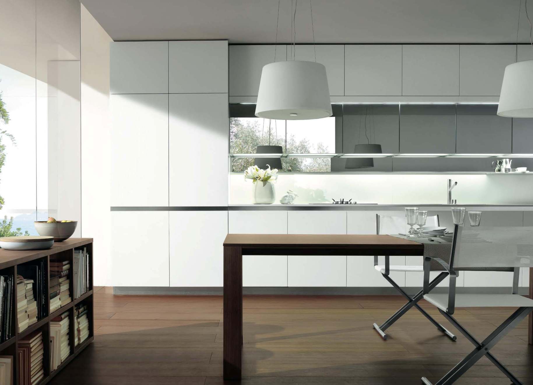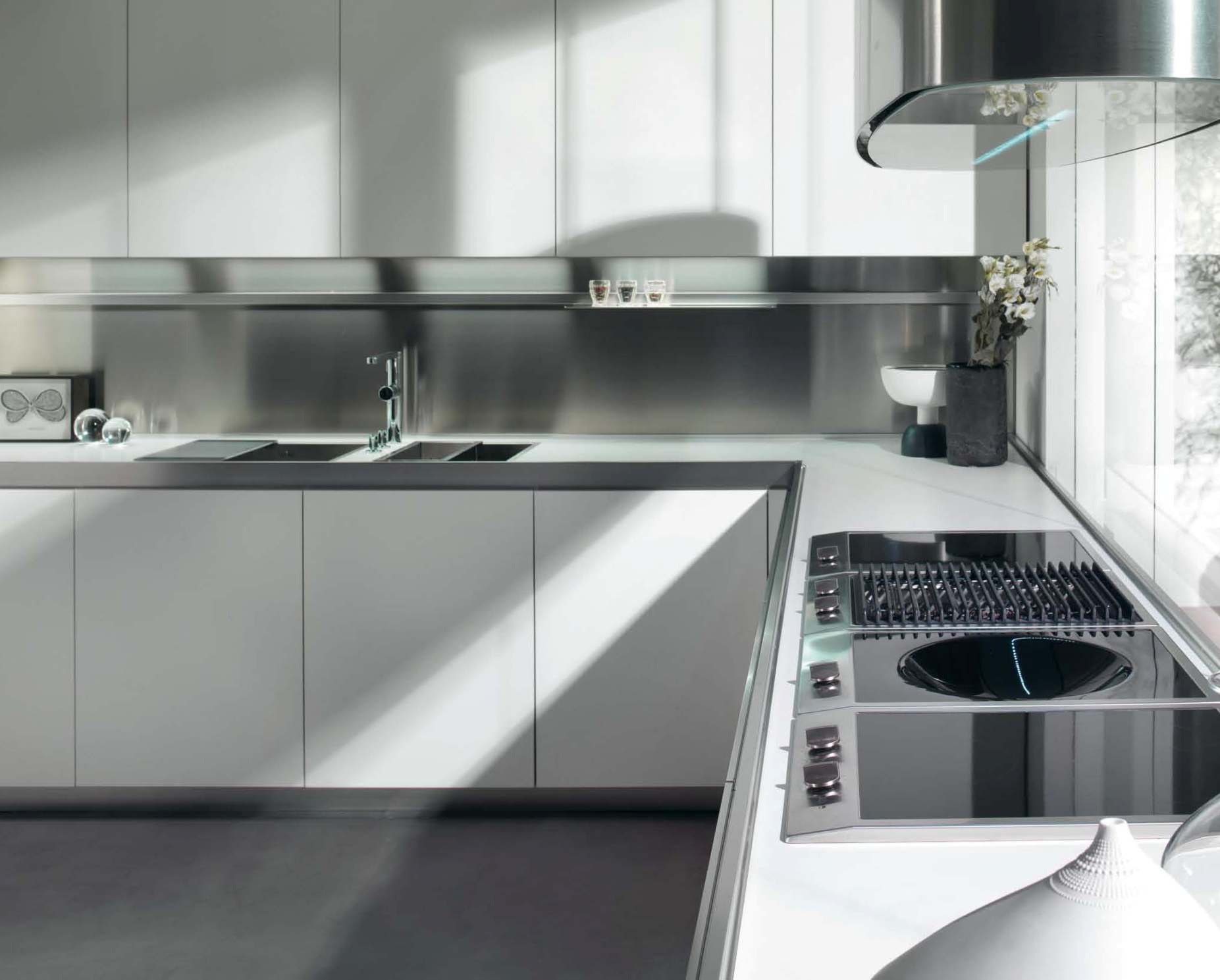 Kitchen Longline from Salvarani Italian manufacturer. The headset frame is made of MDF, the facade was decorated spanam and stainless steel. Countertop made of artificial stone. Longline harmonizes the interior and symbolizes the time-tested functionality of minimalism. Set presented in a contemporary style.