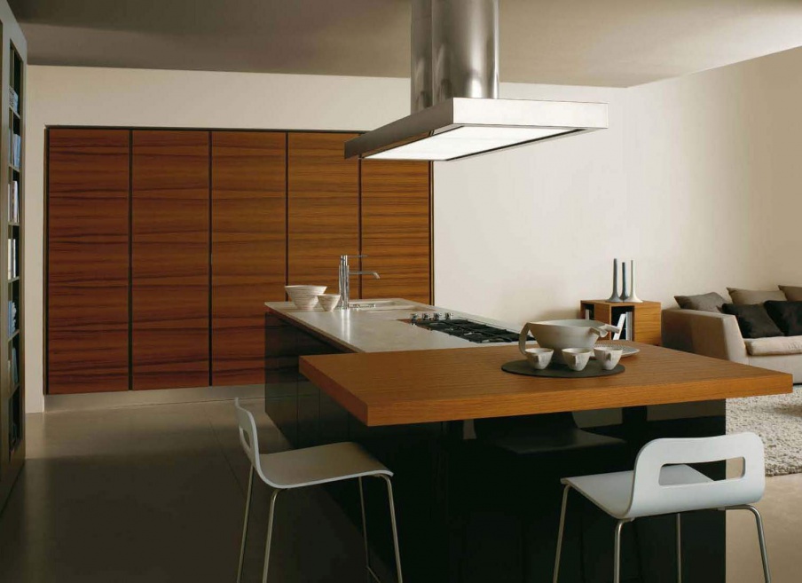 Kitchen High teak from the Italian manufacturer Salvarani. The frame presents furniture made of MDF, finished with keyway, metal frame, the surface is lacquered. Kitchen High teak in a modern style.