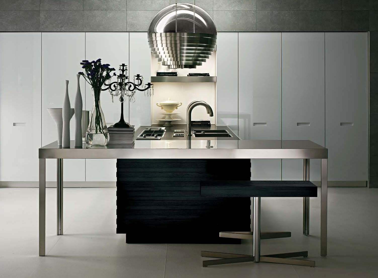 Kitchen Cuisine from the Italian manufacturer Salvarani. The model is made in modern style. The frame is made of MDF, the facade was decorated spanam and stainless steel. Countertop made of artificial stone. The color of the headset in combination of steel and black.
