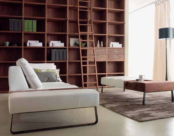 Sofa set from the Italian manufacturer Riva 1920. Includes shelves, double sofa and Ottoman. Frame and top made from solid wood. The fabric or leather manufacturer. Set is manufactured in contemporary style.
