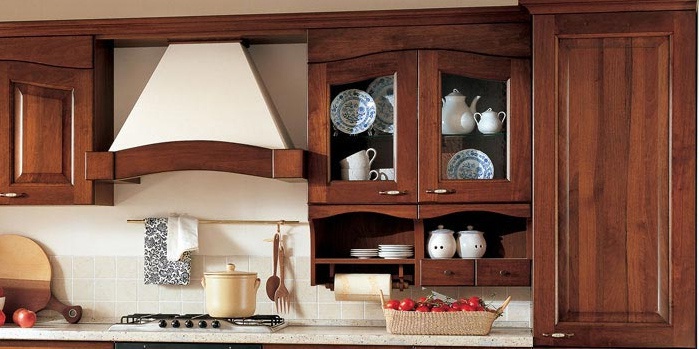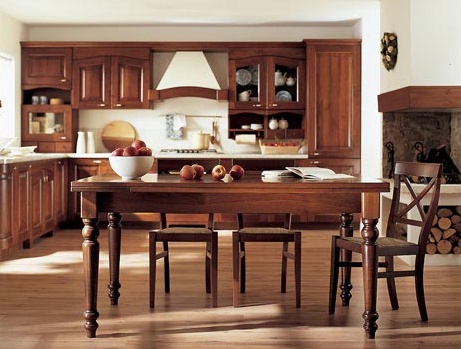 The kitchen At Casale from the Italian manufacturer Arrital Cucine. The doors are made of wood. The colour of this model - the natural color of wood.