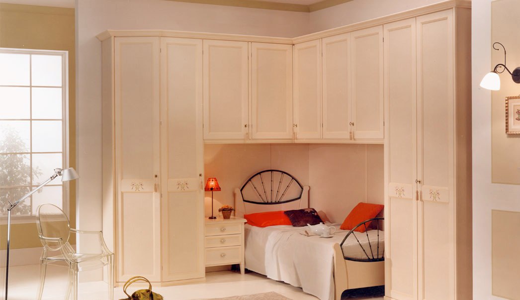 Headsets for children from the Italian manufacturer Pentamobili. Set includes: single bed, bedside tables and modular storage system. The furniture is made of solid wood. Finish - white lacquer from the range of the campaign. Wall with storage space for books and clothes. Colours in stock.