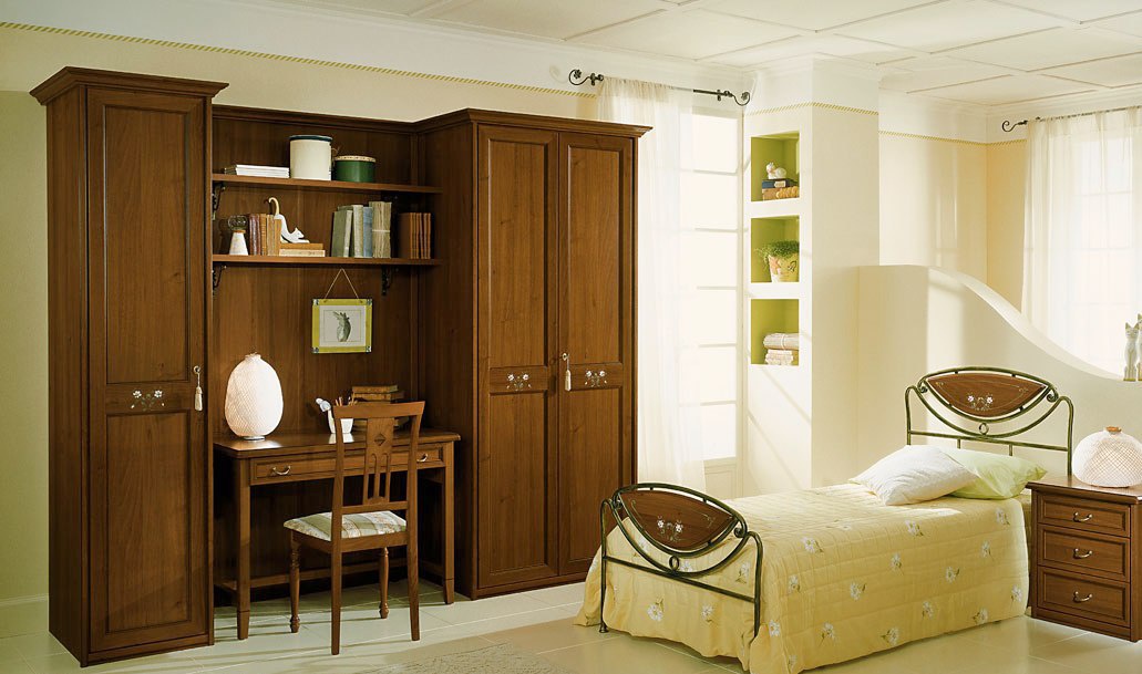 Headsets for children from the Italian manufacturer Pentamobili. Set includes: twin bed, a nightstand, a Desk, a chair and a wall. The furniture is made of solid wood and metal. Chair with upholstery. Finishing varnish from the range of the campaign. The color of natural wood products.