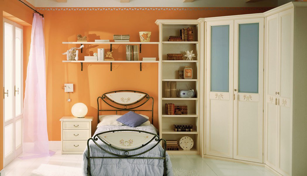 Headsets for children from the Italian manufacturer Pentamobili. Set includes: single bed, a modular storage system and a nightstand. The furniture is made of solid wood and metal. Fold - frosted glass. The color of products is white.