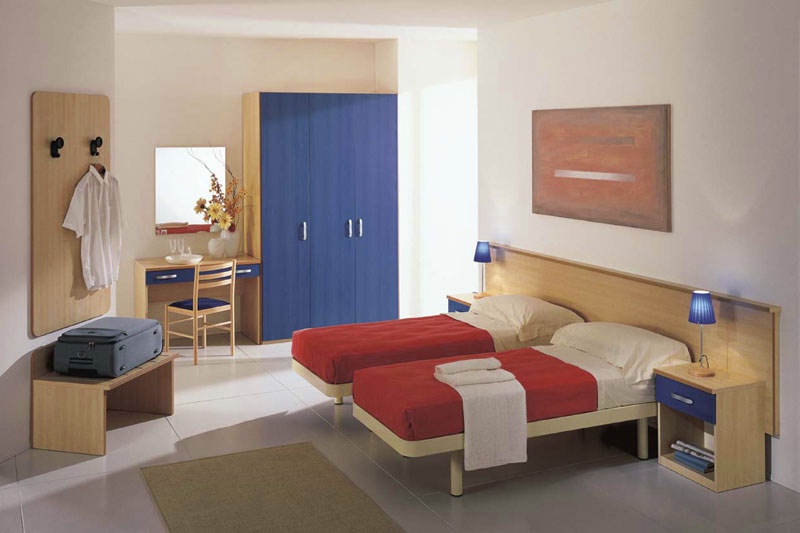 Headsets for children from the Italian manufacturer Pentamobili. Set includes: single bed, bedside tables, wardrobe, chair and Desk. The furniture is made of solid wood. Handles - metal. The upholstery - textiles. Finishing varnish from the range of the campaign. Colors: blue, natural color of the wood.