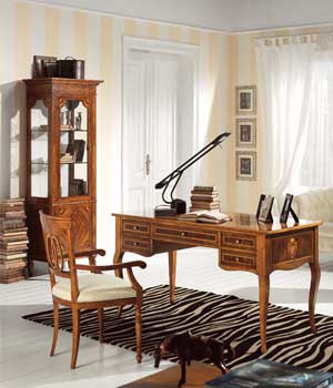 Desk from the Italian manufacturer Tosato. Presents a model of the Desk on four curly feet. Mounted on a wooden framework, fitted with drawers. The color of the table natural wood. A style classic.