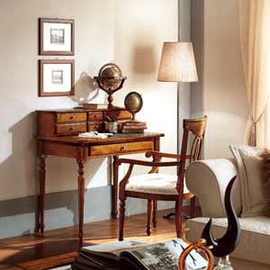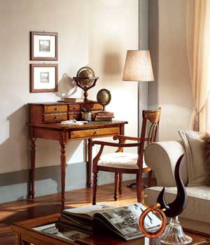 Bureau of the Italian manufacturer Tosato. Model on four high legs. The Carcas is wooden, the color of the table natural wood. Equipped with pull-out drawers. A style classic.