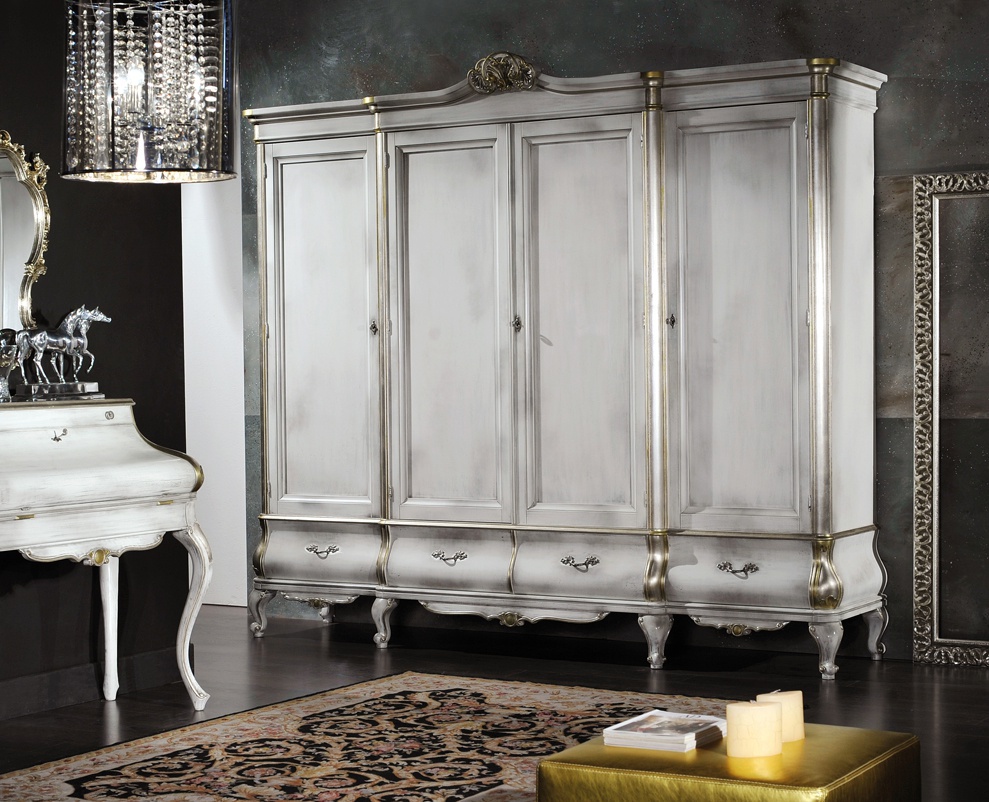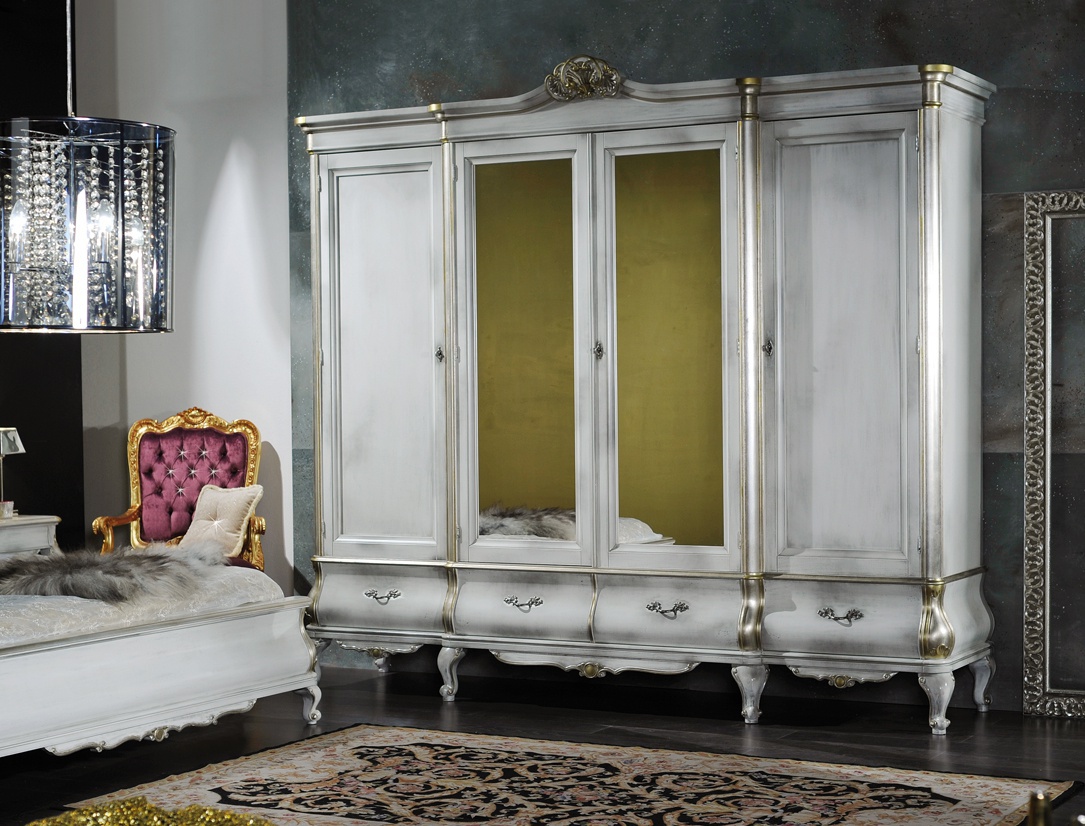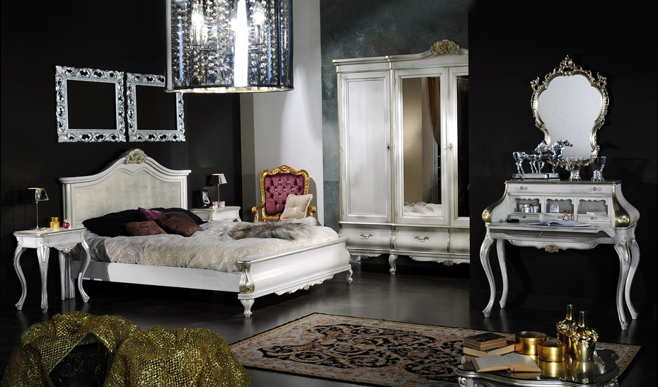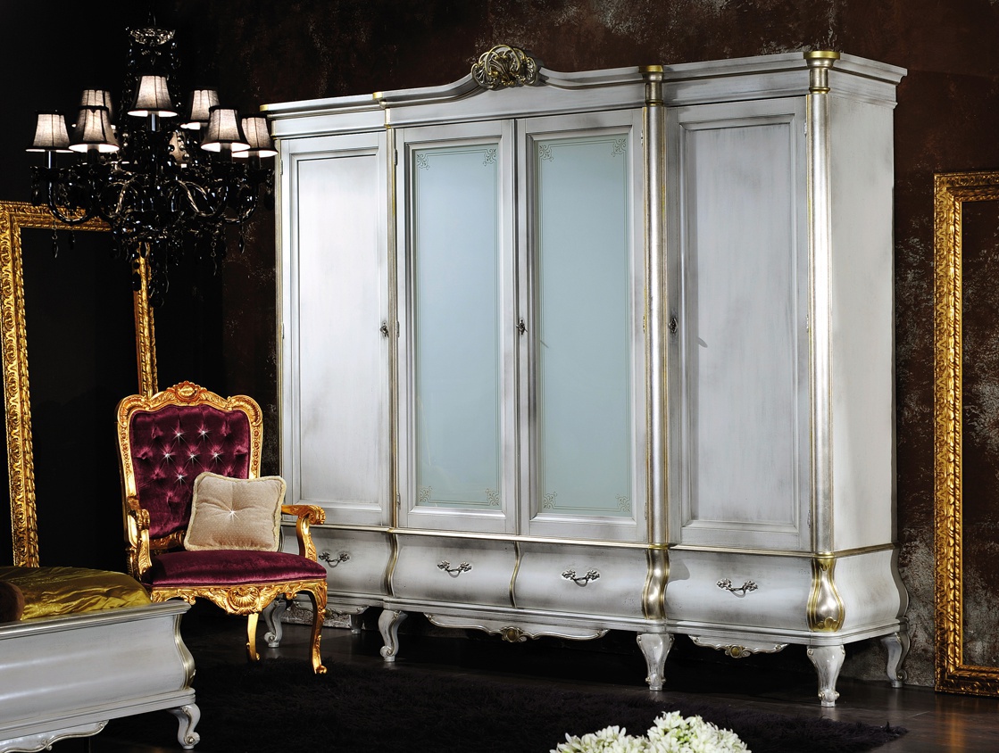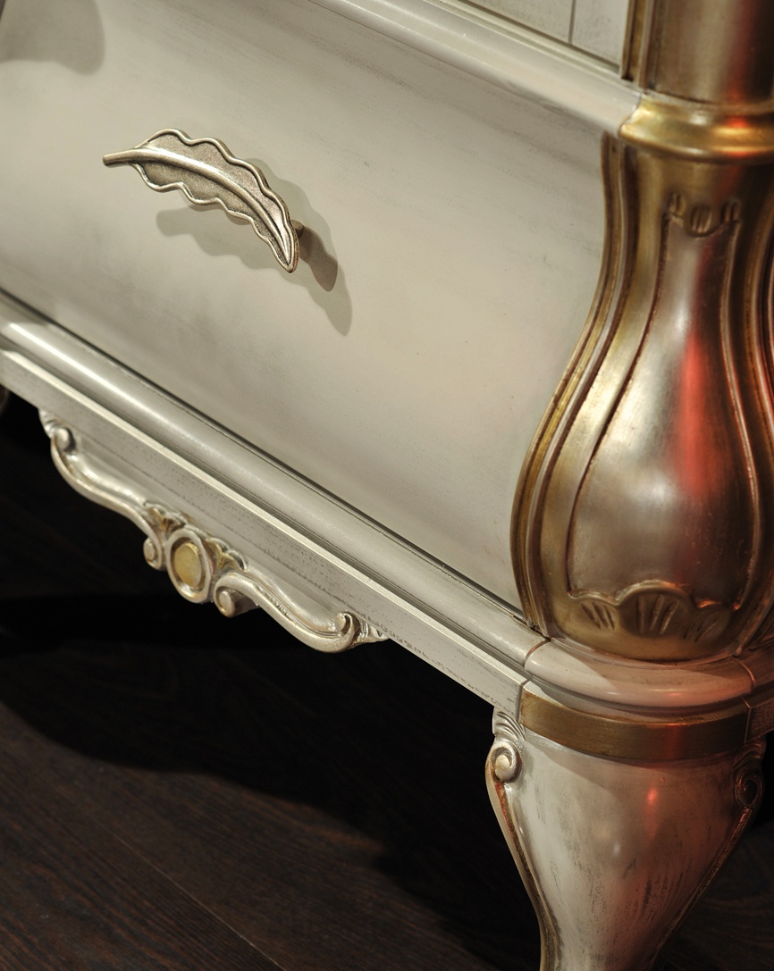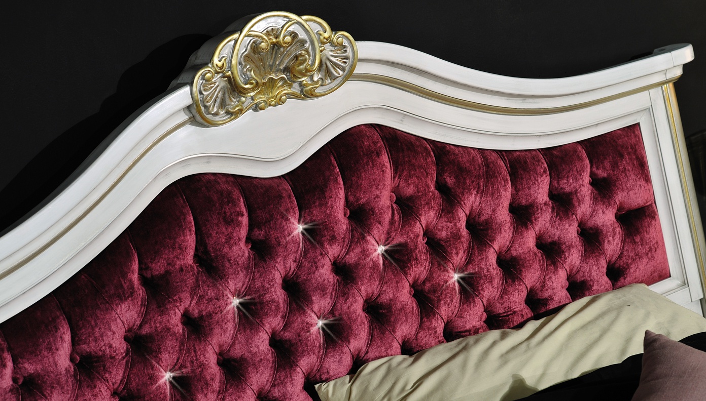 Headsets for bedrooms from Italian manufacturer Mirandola Export. Set includes: double bed, armchair, bedside tables, wardrobe and chest of drawers. The furniture is made of solid wood. Upholstery - textiles from a range of campaigns. Decorative accessories - metal. Finish options: lacquer/gold plated/silver plated. Colours in stock.