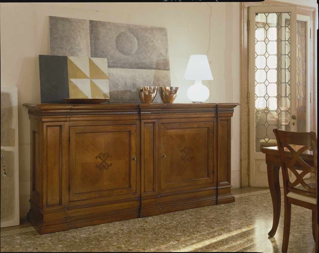 A chest of drawers from Italian manufacturer Santarossa. A model with swing doors. The frame is made from solid wood. Finish to be selected from the range of the company. Decorative accessories made of metal. The model is decorated decorative handmade ornament. Made chest in a classic style.