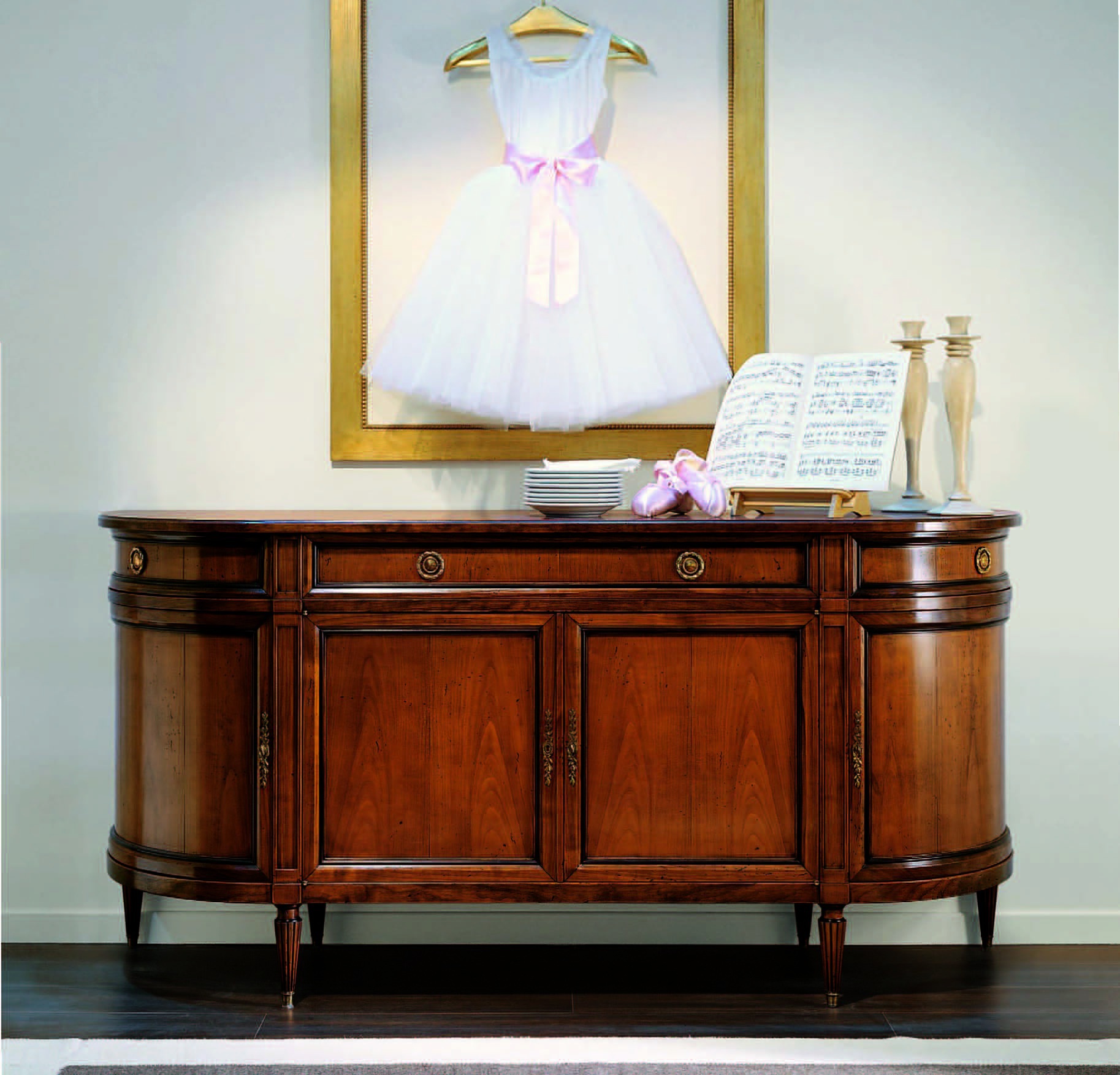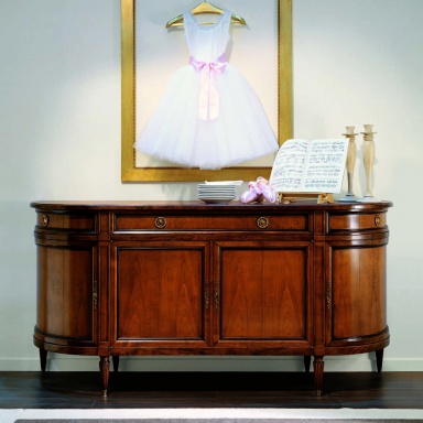 The snack bar production from the Italian Salda. The model is provided with double doors. The material is solid wood. Color finish is offered under the color of natural wood. The cabinets are equipped with handles made of metal. A snack bar is made in classic style.
