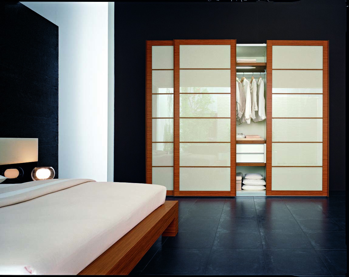 Wardrobe from the Italian manufacturer Santarossa. The model is made in modern style. The frame is made from solid wood. The facade is complemented with rectangular inserts of frosted glass. Doors have a sliding mechanism. The Cabinet is durable and capacity.