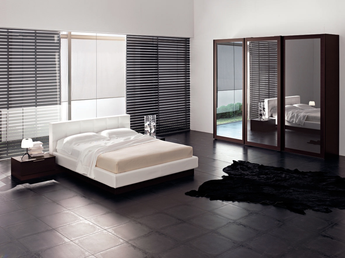Headsets for bedrooms from Italian manufacturer Santarossa. Includes double bed, two bedside tables and wardrobe paid. Material - solid wood. Frame and headboard upholstered in leather white color. Decorative accessories made of metal. Sash Cabinet complete with glass overlays. Set is manufactured in contemporary style.