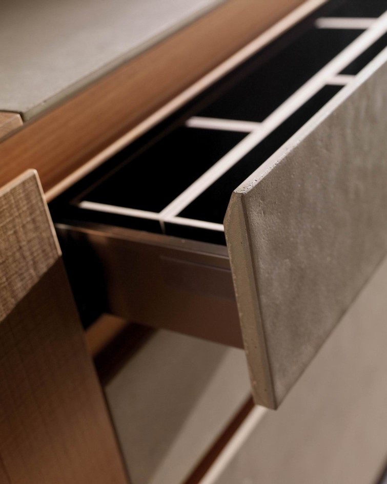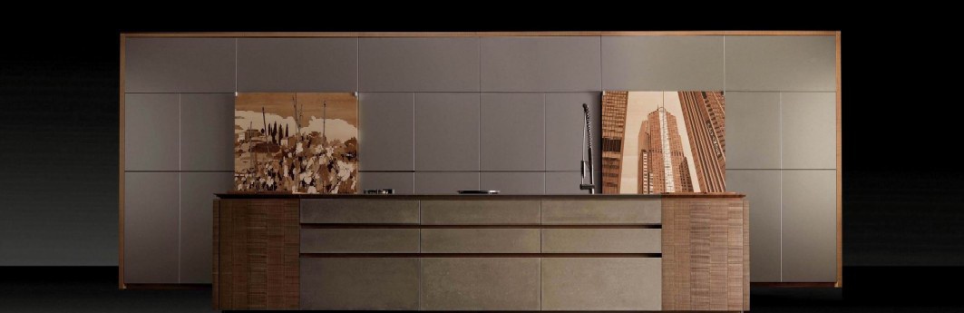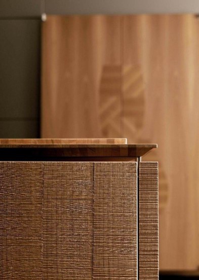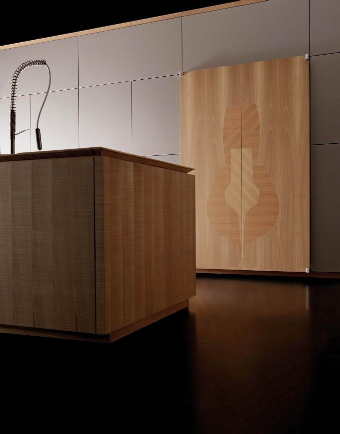 Kitchen by Italian manufacturer Toncelli. The frame is made of MDF, the facade of veneer wood. Countertop made of natural stone and stainless steel.