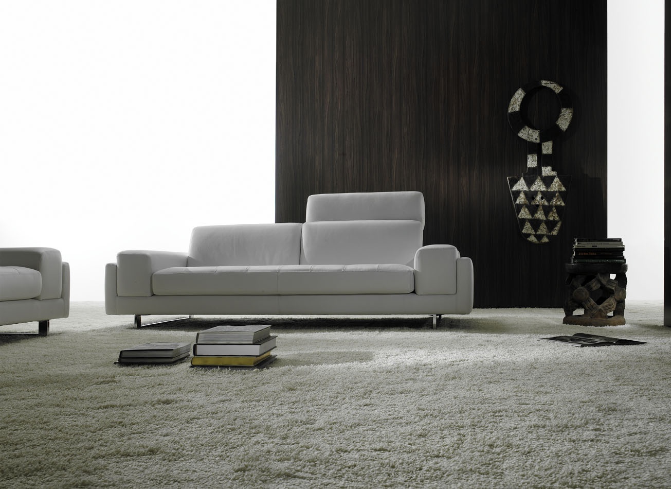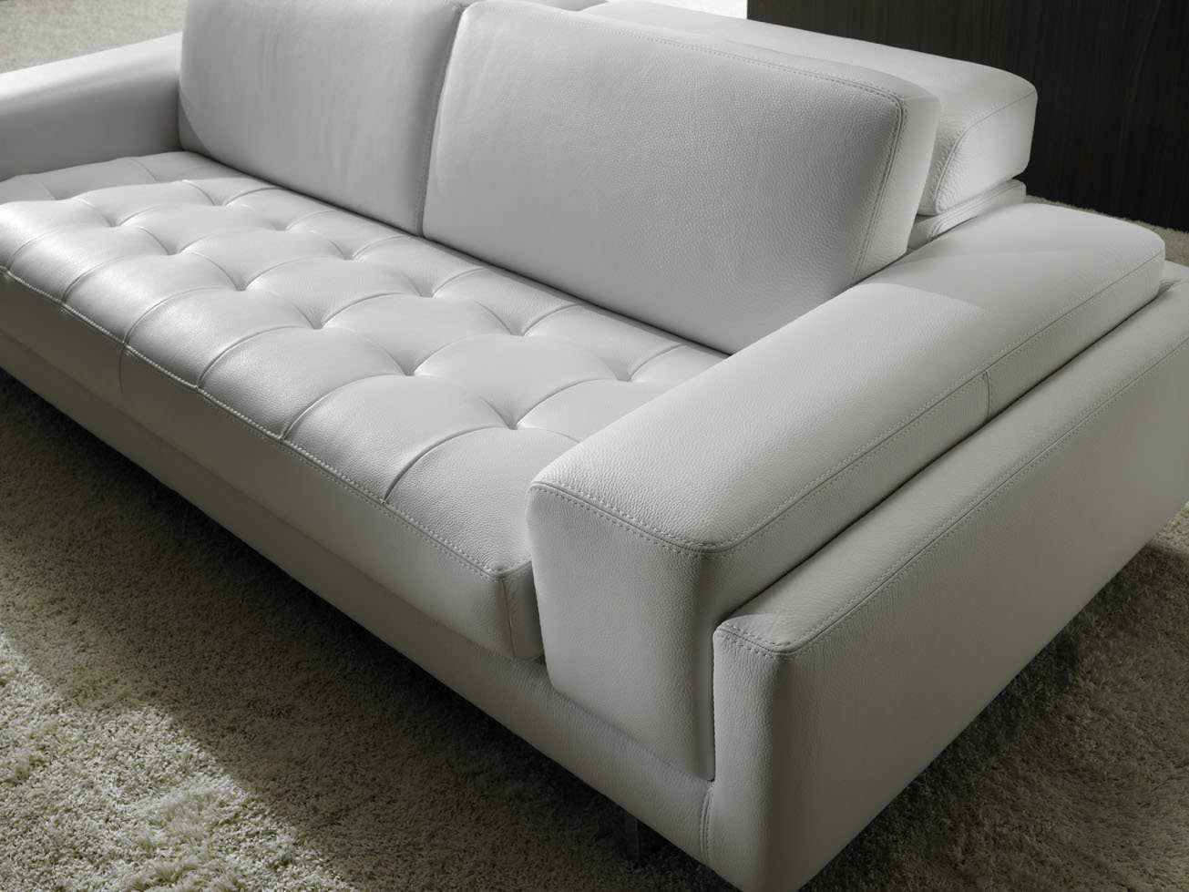 Sofa set from the Italian manufacturer Polaris. Set includes: loveseat and coffee table. The frame is made of metal. Worktop - glass. Table rectangular shape. The filler of sofa foam. Upholstery - leather. Seat and back are removable. The color of products is white.