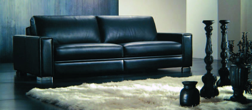 Two-seater sofa from Italian manufacturer Polaris. The legs are made of metal. Filler - polyurethane foam. Upholstery - leather. Back and seat removable. A great choice for living room in modern style. Product color black.