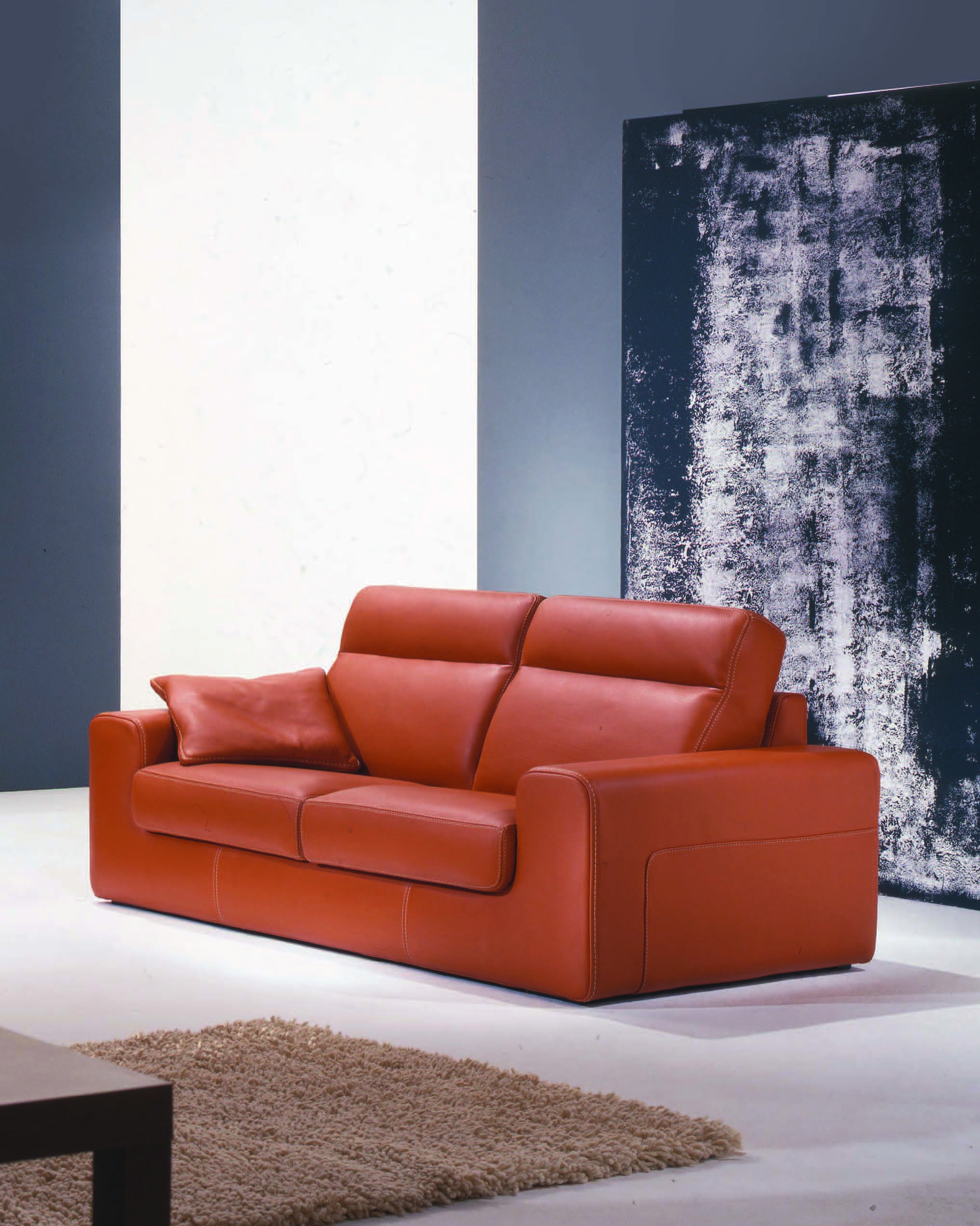 Two-seater sofa from Italian manufacturer Polaris. Model upholstered in natural leather. Seat and back are removable. The perfect choice for a living room in modern style. Product color sand.