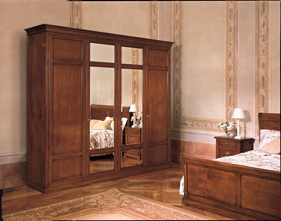 Wardrobe from the Italian manufacturer Santarossa. The model is made in classic style. Material - solid wood in the finishes from the range. Central fold augmented mirror inserts. Decorative metal fittings painted in Golden color. The model is elegant, practical and durable.
