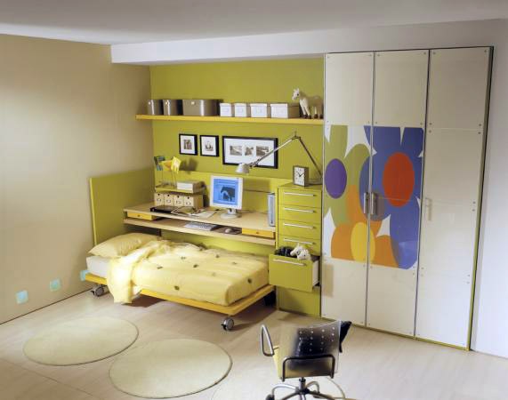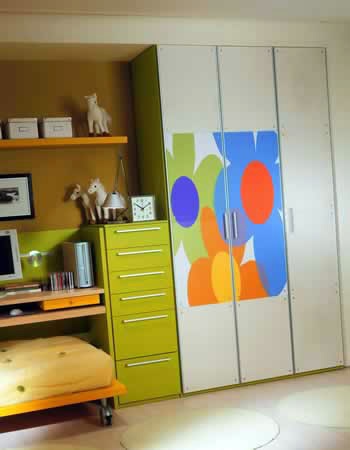 Headsets for children from the Italian manufacturer CIA International. Set includes: single bed, wardrobe, bookshelves and Desk. The furniture is made of solid wood. The legs and handles of metal. Colours in stock.