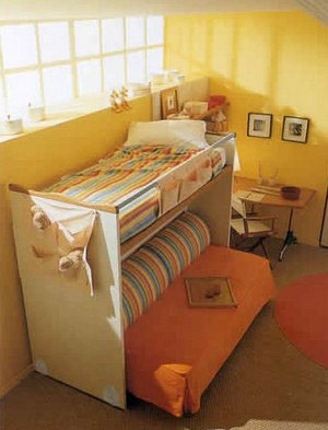 Headsets for children from the Italian manufacturer CIA International. Set includes: bunk bed, modular storage system and a Desk. Furniture made of solid beech wood, finishing lacquer. Colours in stock.
