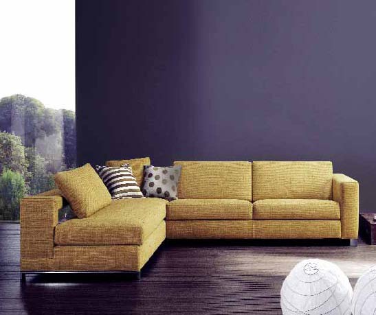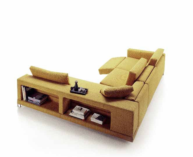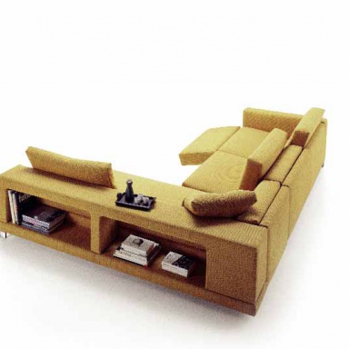 Corner sofa from Italian manufacturer Pol 74. The legs are made of metal, filler - foam, upholstery - textiles from a range of campaigns. Back and seat removable. Sofa with built in shelves for books. A great model for living room in modern style. Product color beige.