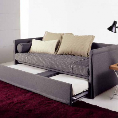 Two-seater sofa from Italian manufacturer Pol 74. The frame is made of metal. Upholstery - textiles from a range of campaigns. The sofa bed will decorate the living room in a modern style. The design of complementary decorative pillows and cushions. Product color grey.