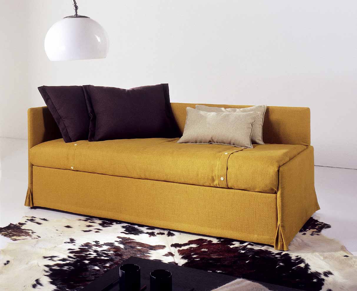 Sofa bed from Italian manufacturer Pol 74. Double model is upholstered in fabric from the range campaign. The base is hidden a decorative "skirt". The design of complementary decorative pillows. A great choice for living room in modern style. Colours in stock.