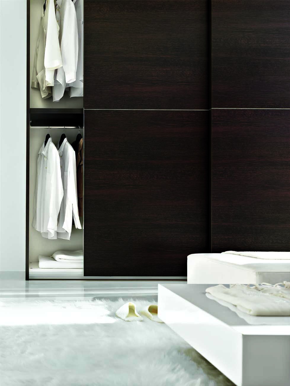 Wardrobe from the Italian manufacturer Santa Lucia. The modern model with sliding doors. The profile is made of chromed metal. The frame is solid wood. Finish offered a choice from a range of companies. The model will perfectly fit any interior.