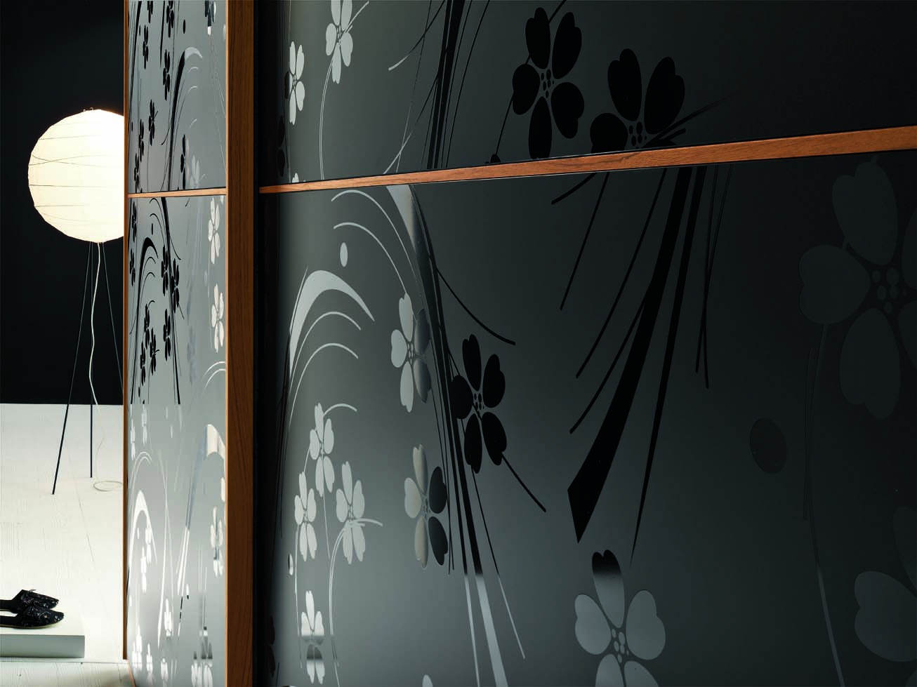 Wardrobe from the Italian manufacturer Santa Lucia. The model is made in modern style. The frame is made from solid wood. The wardrobe frosted glass adorned with decorative flowers. Finish available in black and natural wood color. The perfect solution for any interior.