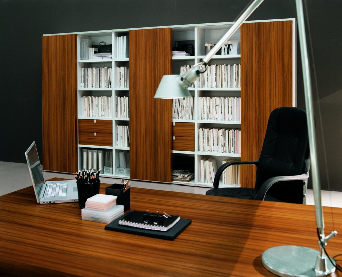 Headsets for the office from the Italian manufacturer Santa Lucia. Includes Desk, Desk chair and bookcase with open and closed shelves. Frames models made of solid wood. Finish to be selected from the range of the company. Fittings made of metal or plastic. Upholstery leather of black color. The padded chair with wheels. Headsets are made in a modern style.