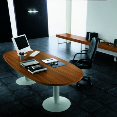 Desk from the Italian manufacturer Santa Lucia. The model has a original design. Massive legs with round base metal. Countertop oval shape made of solid wood. Finishing varnish from the company portfolio. The table is manufactured in contemporary style.