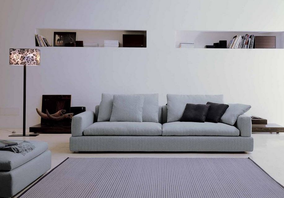 The Float sofa from Italian manufacturer Seven Salotti. The frame is made of wood. Upholstery - textiles. Colors - grey. The legs are not visible. The model is made in modern style.