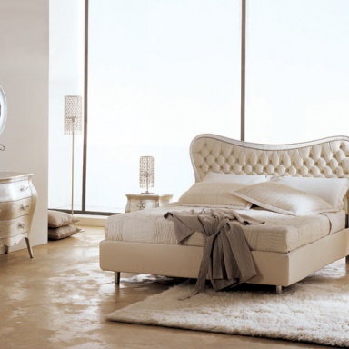 Headsets for bedrooms from Italian manufacturer Cantiero. Set includes: double bed with high headboard and a soft, bedside tables and chest of drawers. The furniture is made of solid wood. Upholstery headboard - textiles from a range of campaigns with a decorative stitch Capito. Colours in stock.