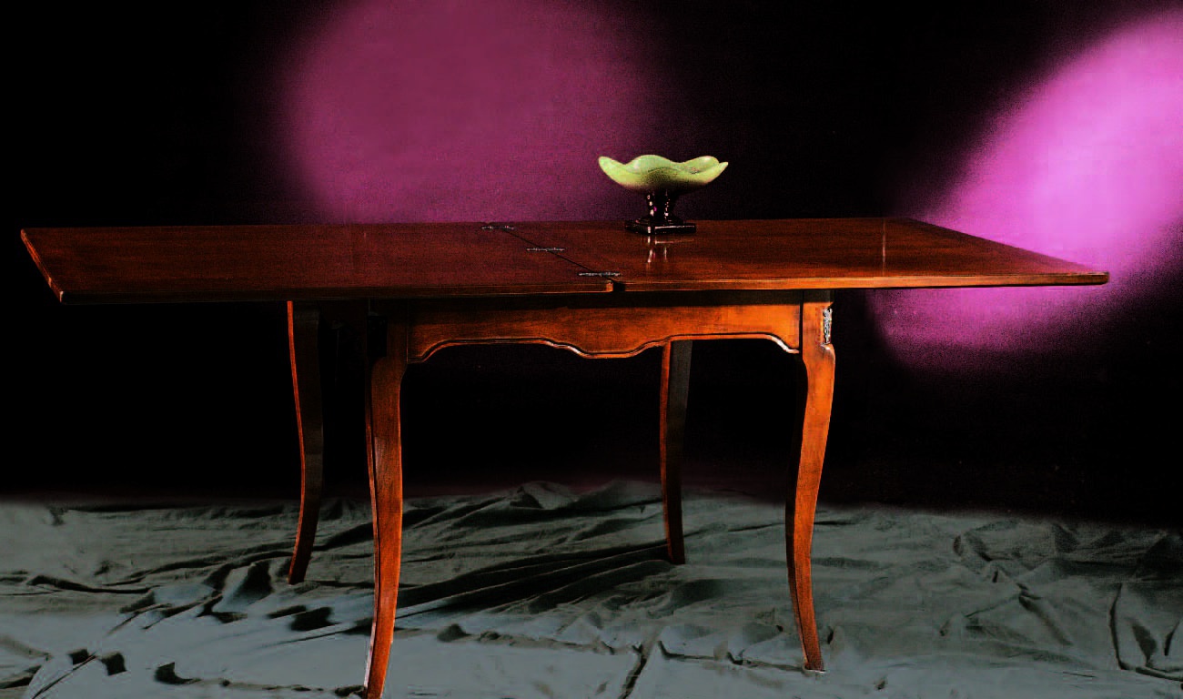 The table from the Italian manufacturer Stella Del Mobile. Dining table - transformer on bent legs. The length of the tabletop can be increased by two tabs extensions. Material - solid wood.