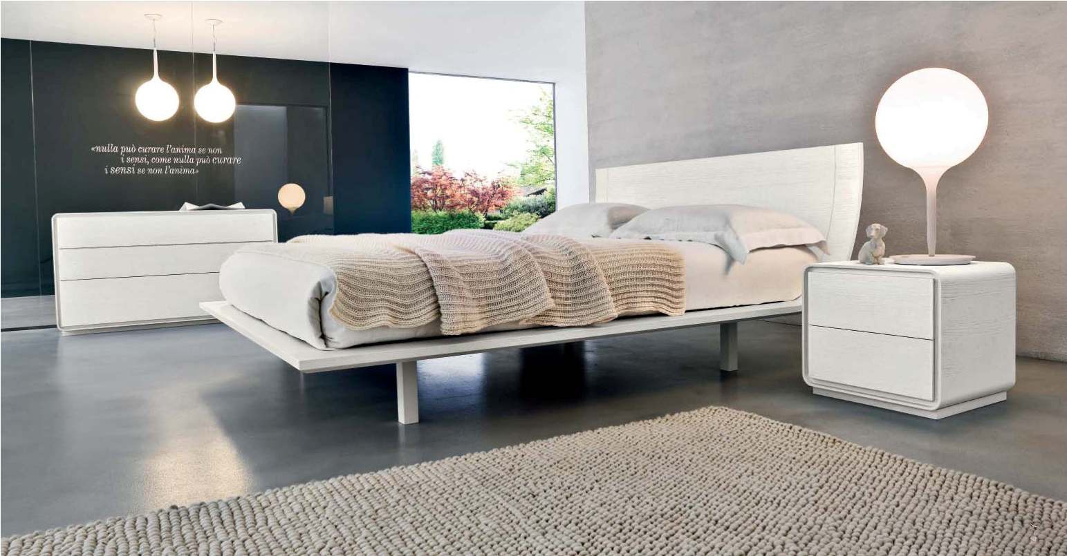 Italian furniture for bedroom production of Veneran. Set consists of a double bed with high headboard, bedside tables with drawers and chest of drawers. Frames made from solid wood.Color headset - white. The model is made in modern style.