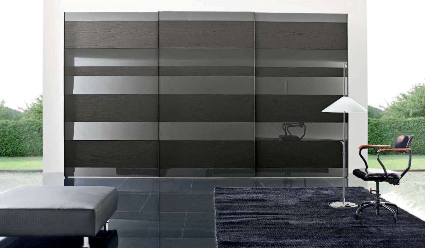 Storage system from the Italian manufacturer Veneran. Is a large closet with sliding doors. The presence of a large number of shelves make it practical and convenient for storing clothes. The frame is made of natural wood covered in gray lacquer. The surface of doors with decorative tempered glass. The model is made in modern style.