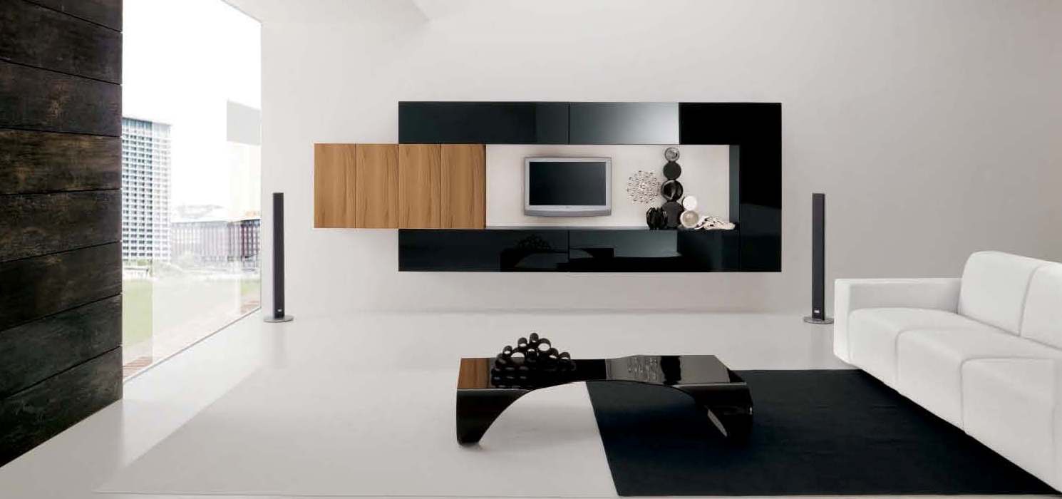 Furniture for TV Italian manufacturer of Veneran. Presents modern retractable system for TV. Consists of shelves and wall cabinets for storage drives and other accessories for TV. The system in the black version with the color of natural wood.