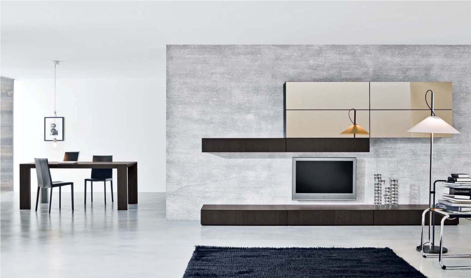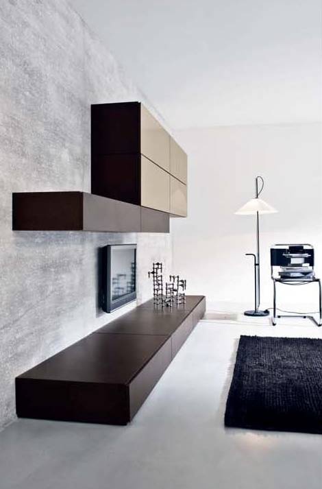 Furniture for TV Italian manufacturer of Veneran. Presents a modern system for TV. Consists of wall cabinets for storage drives and other accessories for TV. Presents the system in a beige version, selection of possible colors in stock.